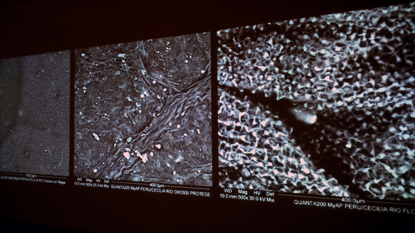 “The cities are living beings for me and Rio is a believer. I proposed to create these "future relics", with a sort of reverse engineering, and send them to the future. In the manner of a future archaeologist, I contrasted the belief with the composition of the object through electron microscopy sending these samples to the laboratory in Lima. In that sense, samples turned in to relics and traveled as they used to do in the past.”
